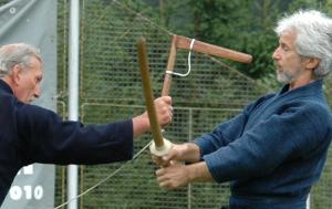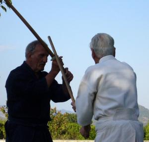 Na základě tohoto tajemného poselství, božského vnuknutí, vytvořil Musó novou zbraň, jednoduchou rovnou hůl, dlouhou 4 šaku, 2 sun a 1 bu (přibližně 128 centimetrů), podstatně kratší než byly v té době používané tyče a jen o málo delší než byl obvyklý meč. Nová zbraň, kratší a tenčí hůl, byla praktičtější než dlouhé bó, umožňovala rychlejší změnu pozic, při střídavém používání obou konců a měla mnoho dalších výhod, které jsou zřetelné při sledování technik této školy. Musó vytvořil pět technik, které jsou v osnovách rjú dodnes, jako tajné učení školy (Hiden gokui nebo také Go Musó no džó).